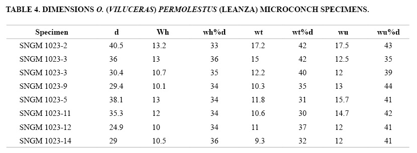 The upper fossiliferous level with O. (O.) atherstoni was also identified at Quebrada Nantoco. We collected three specimens from that locality (SNGM 1021 [7-9]), which are associated with a specimen of Bochianites sensu lato, several meters above a bed with Lissonia.