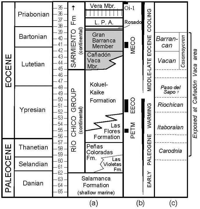 Cifelli, R. 1985. Biostratigraphy of the Casamayoran, Early Eocene of Patagonia. American Museum Novitates 2820: 1-26.