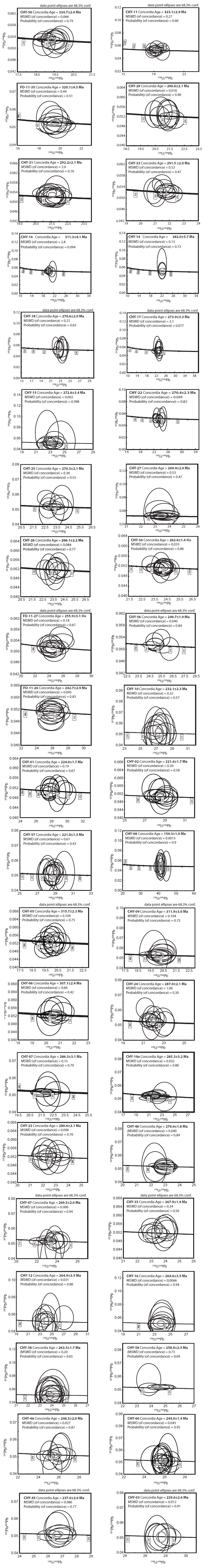 Tera-Wasserburg concordia plots of SHRIMP U-Pb zircon ages for samples dated during this study (ordered according Tables 3 and 4). Ellipses and error in ages in the inset are at 1σ; decay constant errors included.