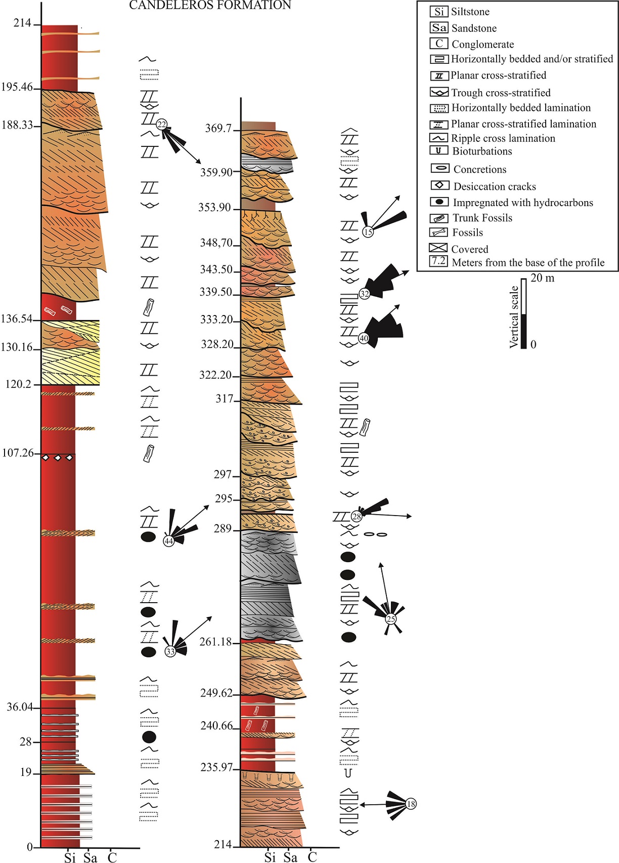 Fig. 2. Stratigraphic and sedimentological section for Candeleros Formation in the study area.