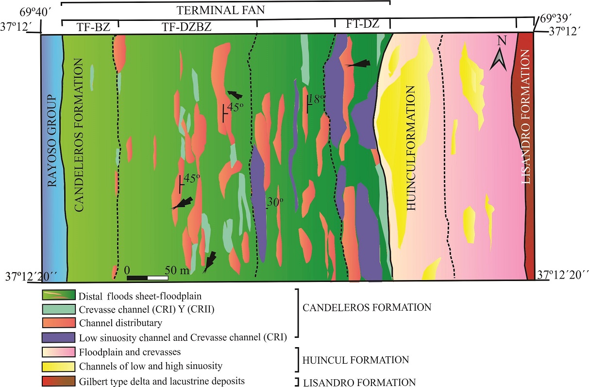 - The Candeleros Formation at the foot of the fold and thrust belt is represented by a terminal fan system.
