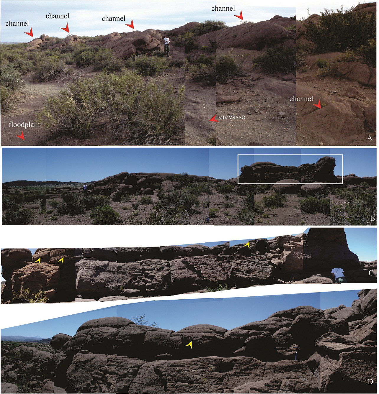 Large sections of the plain were occupied by aeolian dunes. However, they had limited migration controlled by the crevasse splays of the main channels, and were eroded during periods of channel avulsion.