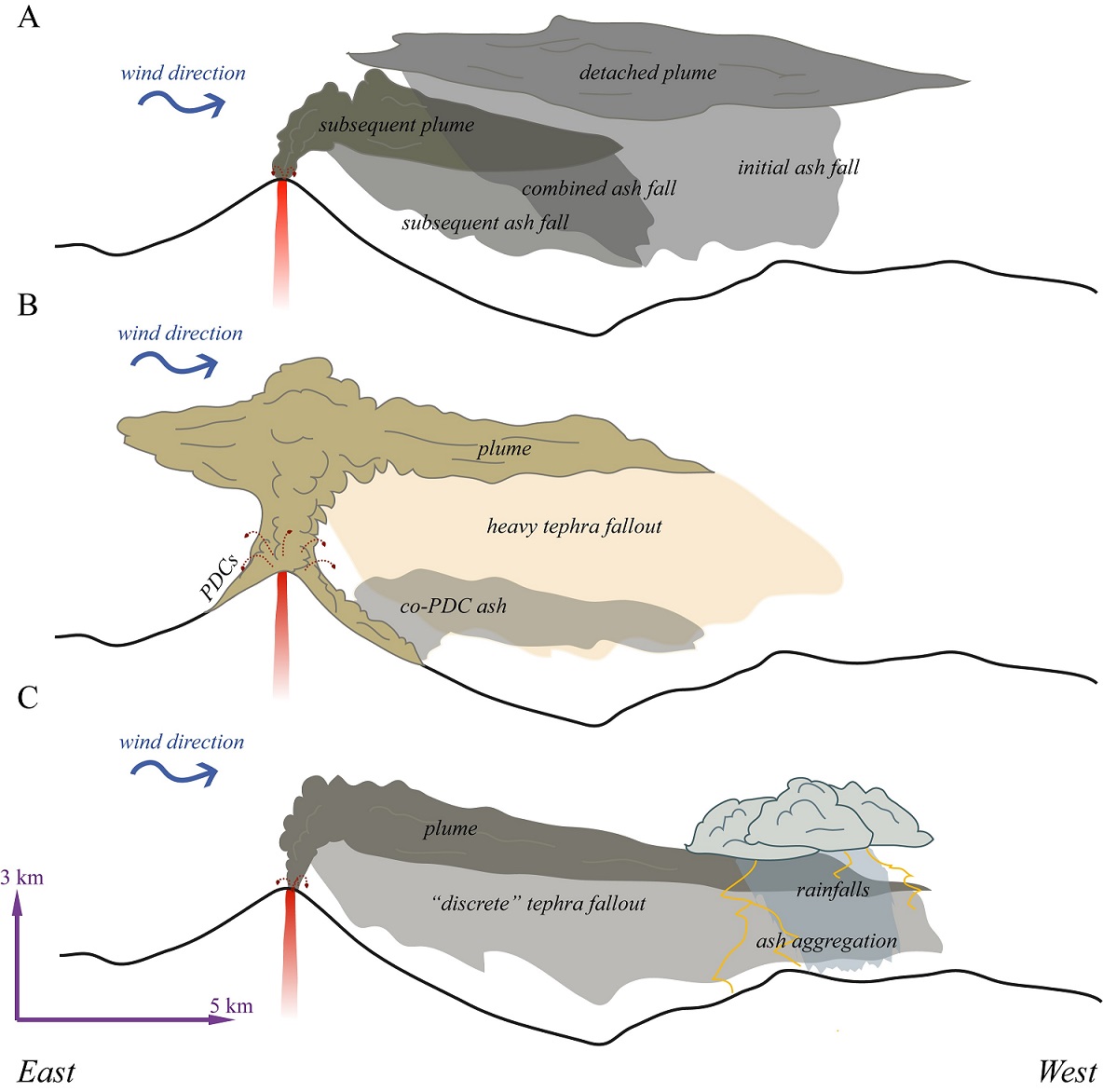 Houghton, B.F.; Carey, R.J. 2015. Pyroclastic Fall Deposits. In The Encyclopedia of Volcanoes (Sigurdsson, H.; Houghton, B.; McNutt, S.; Rymer, H.; Stix, J.; editors). Elsevier: 1456 p.