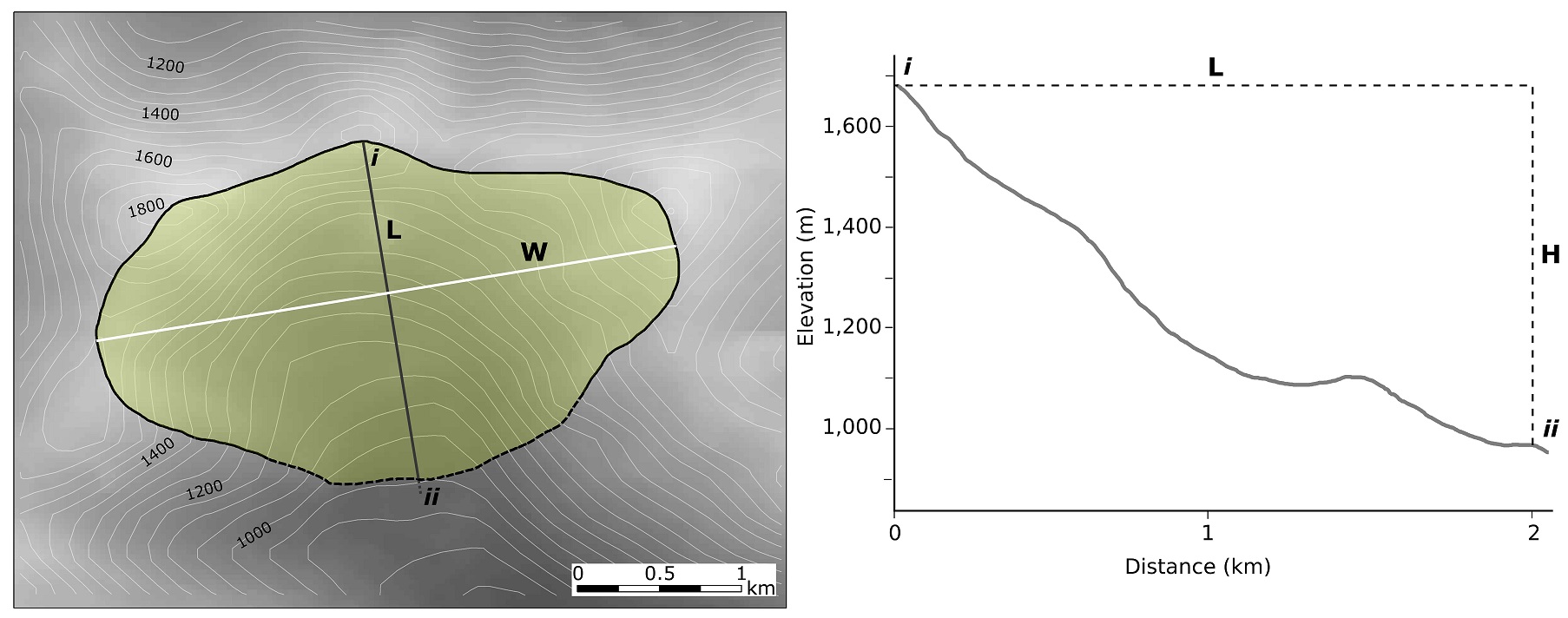 Each cirque was digitized as a closed polygon with a unique ID number, upon which a table containing associated morphometric information was generated. Calculations of planimetric and hypsometric indices (Křížek et al., 2012) were conducted using the open source software Quantum GIS 2.2 and GRASS 6.0. The calculation of variables such as length and width of the cirques was performed in ArcView 3.2.