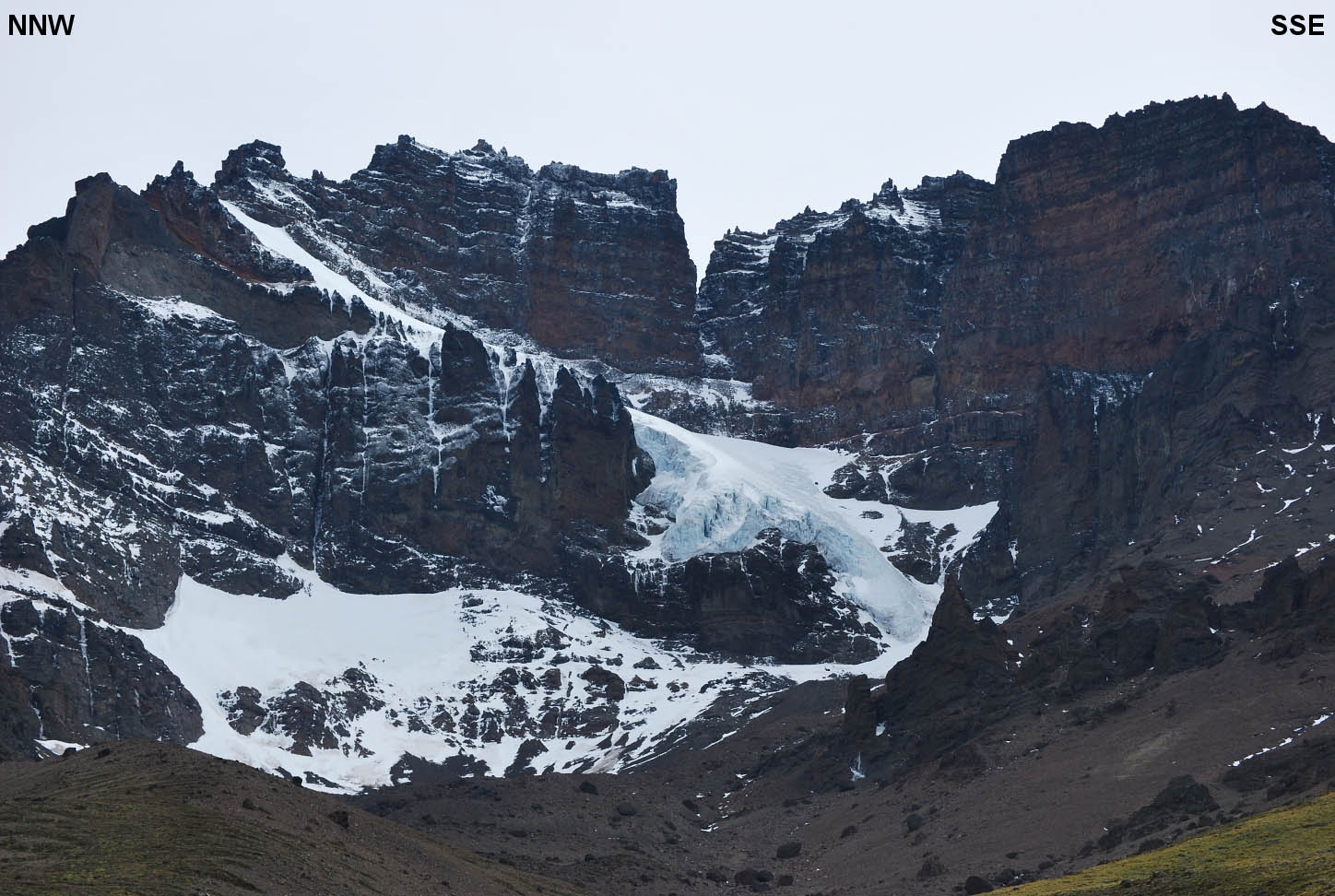 FIG. 7. Cirque showing perennial ice and snow activity (location in figure 1B). This photo was taken in early summer 2014.