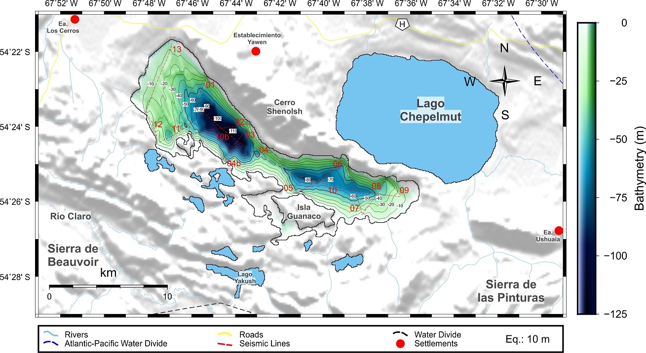 The contribution of this work is mainly focused in the analysis of newly acquired seismic data within the LY, a previously unexplored area from a geophysical point of view, located in the core of the isla Grande de Tierra del Fuego. The seismic records have been used to image the sub-bottom morphology of the basin, to derive its sedimentary architecture, and to propose an evolutionary history of the lake within the general tectonic framework of the external Magallanes fold-and-thrust belt.