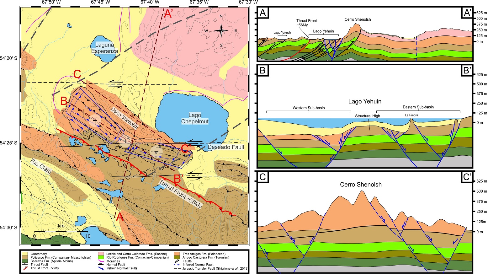 Menichetti, M.; Lodolo, E.; Tassone, A. 2008. Structural geology of the Fuegian Andes and Magallanes fold-and-thrust belt-Tierra del Fuego Island. Geologica Acta 6 (1): 19-42.
