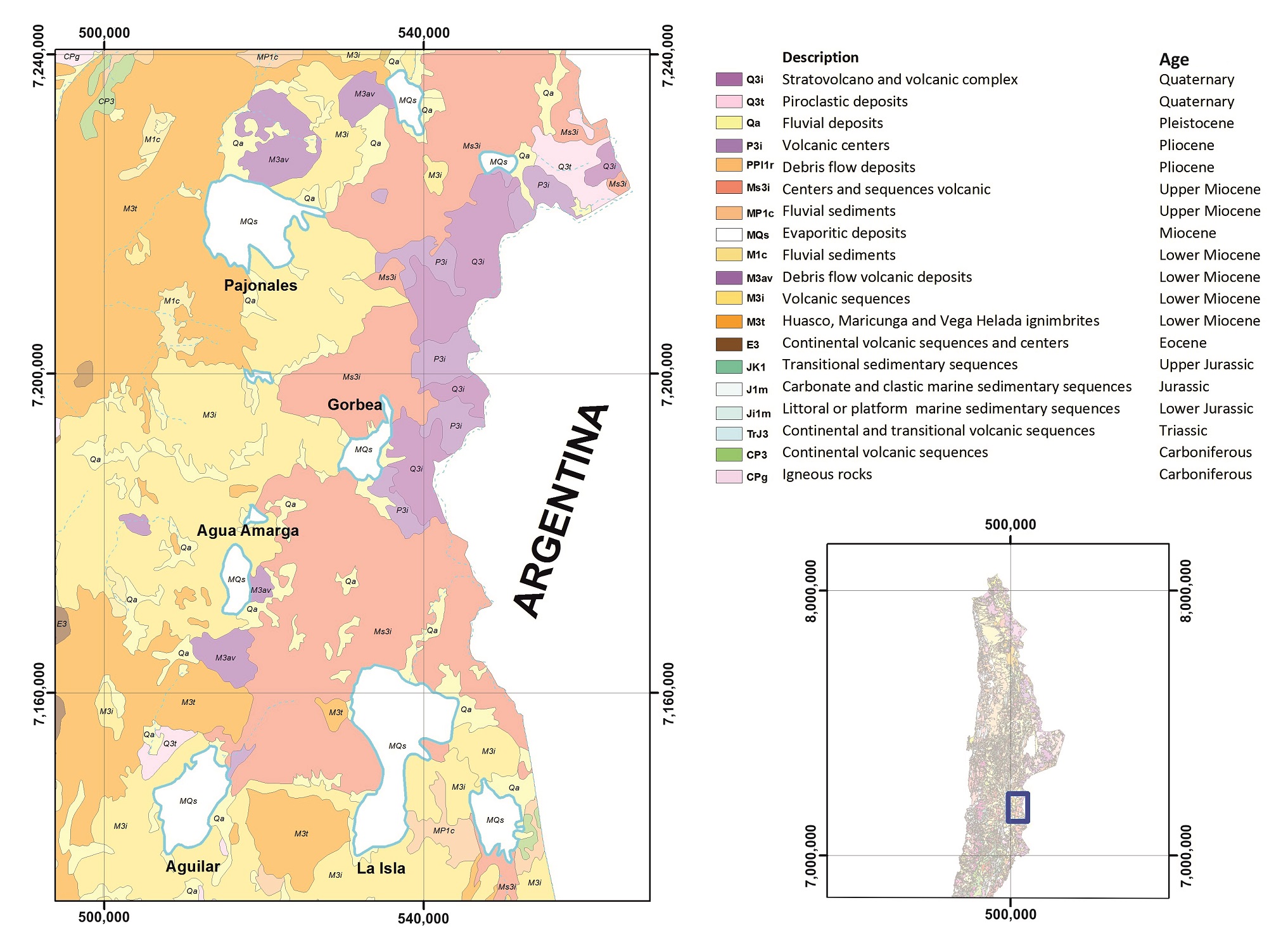 SERNAGEOMIN, 2003. Mapa Geológico de Chile. Servicio Nacional de Geología y Minería, Publicación Geológica Digital 4 (CD-ROM). Santiago.