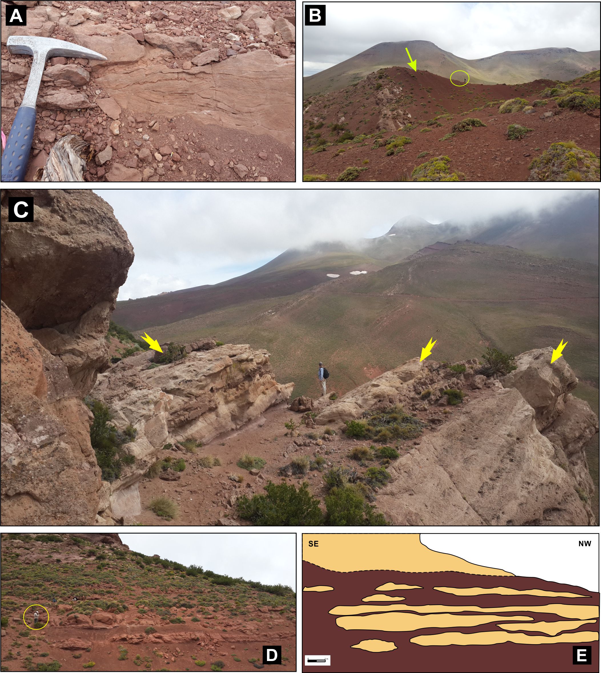 Regarding nomenclature, the choice between Diamante Formation and Neuquén Group has been a stratigraphic controversy since the pioneer studies carried out by Groeber (1946). This discrepancy was generated by the different background and elements that were taken into account to correlate these units at a regional-level, given the absence of guide levels and fossil content. Some authors prefer to use Neuquén Group based on the stratigraphic similarities (Legarreta and Gulisano, 1989; Cruz, 1993; Fennell et al., 2017a; Horton et al., 2016). However, it is not always possible to detect the same facies arrangement, probably due to changes in the sedimentation controls, among other factors. Nowadays, the age of detrital zircons is an important tool used to correlate between the nonmarine deposits outcropping in Mendoza province and the Neuquén Group defined further south (Fennell et al., 2017b). Taking into account all of the above, in this contribution we consider it is more appropriate to use Diamante Formation when referring to the studied rocks. A future challenges is to obtain more correlation elements for the Diamante Formation located between the Laguna del Diamante and the Atuel River, with respect to the Upper Cretaceous sedimentary rock located to the south and north of the study area.