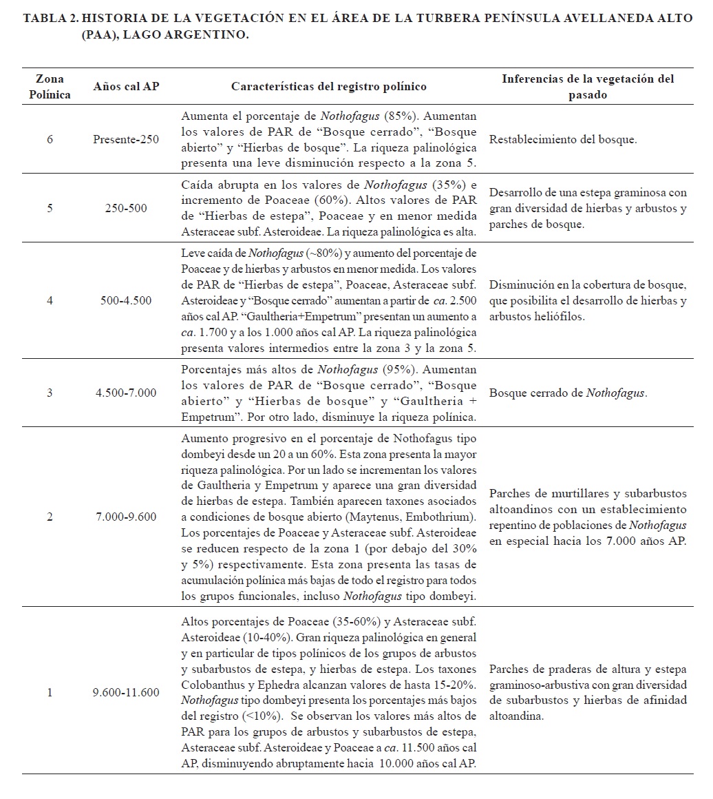 4.2. Reconstrucción de los cambios en las comunidades vegetales de la península Avellaneda y la cuenca del lago Argentino
