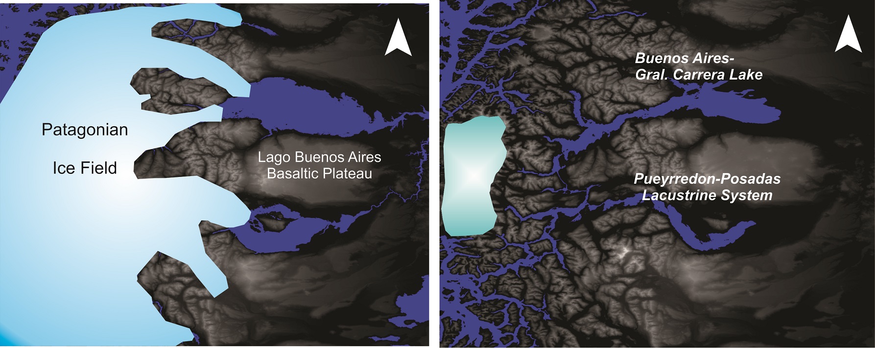 Paleolakes at the foot of the Northern Patagonian Ice field