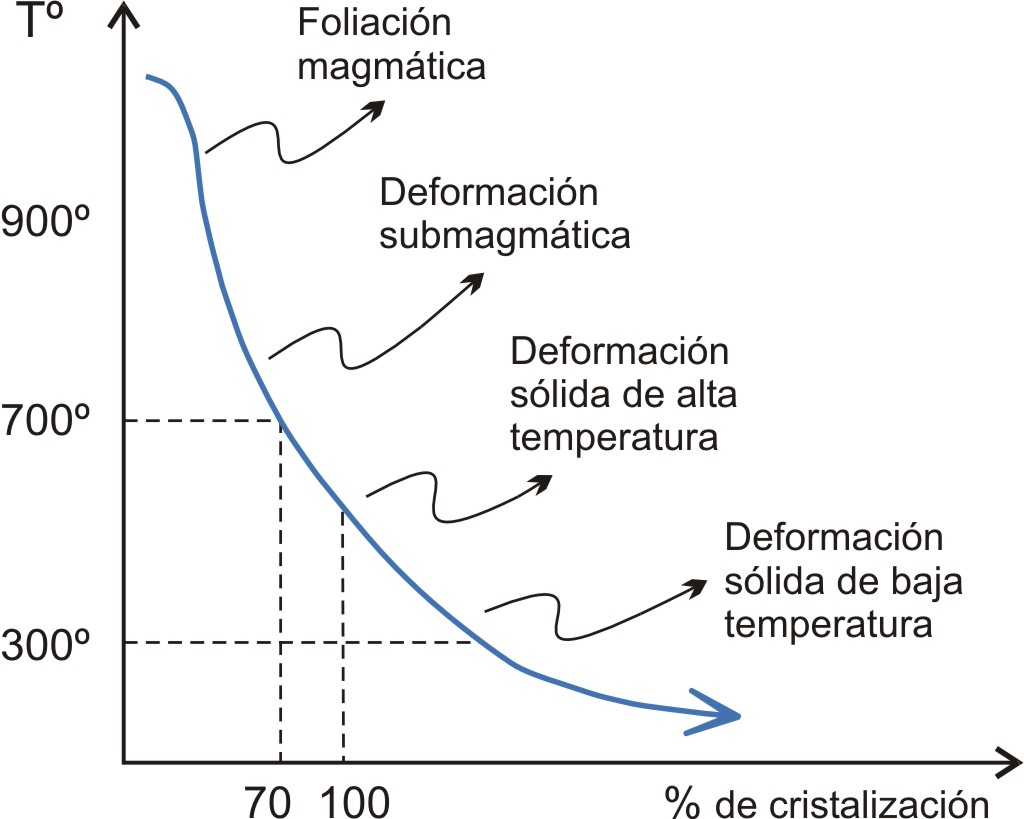 Fig. 14. Eventos de deformación continua que tuvieron lugar en el Plutón El León.