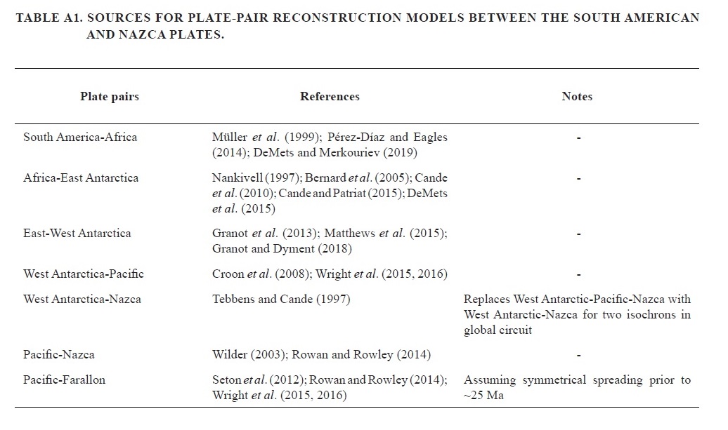 Table A1. Sources for plate-pair reconstruction models between the South American and Nazca plates.