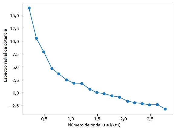 FIG. 3. Ejemplo de espectro de potencia radial promedio de una ventana en la zona de estudio.