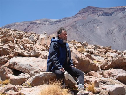 Fernando Gil-Cruz at San Pedro Volcano, located in northern Chile, during a field campaign to identify sites for the installation of volcanic monitoring stations.