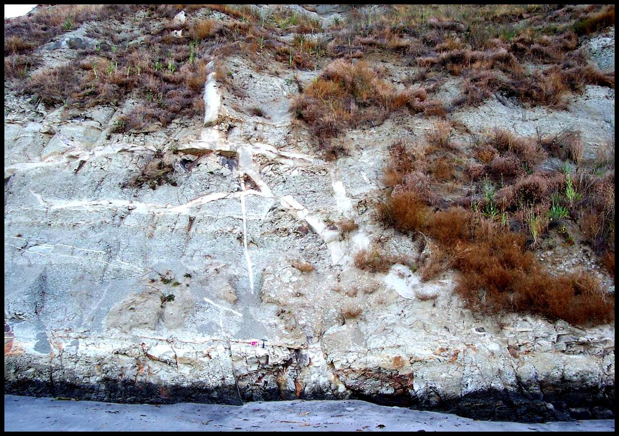 Fig. 2. Downwardly injected sandstone dykes and sills at Ranquil (see Fig. 1 for location).