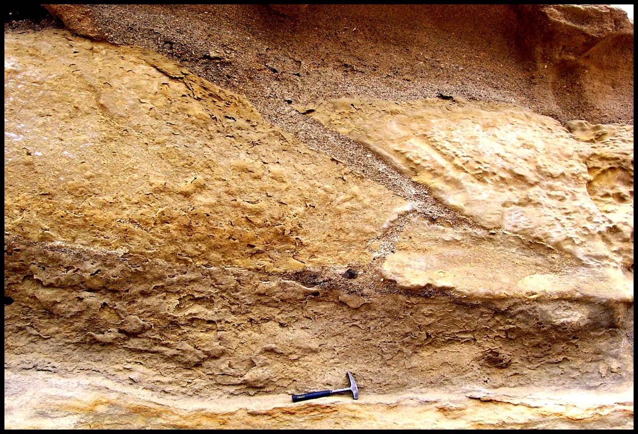 South of Caldera, a megabreccia composed of poorly sorted rip-up clasts fills a submarine canyon. It has a stratigraphic age between 6.0 and about 8.9 Ma, based on a K-Ar date of 7.6±1.3 on a tuff bed (Marquardt et al., 2000) and a 87Sr/86Sr date of 6.8±0.8 Ma (Henríquez, 2006) in the overlying unit. Furthermore, the age proposed by Le Roux et al. (2008) for the Huenteguapi Sandstone also has to be revised, as Globorotalia spheriomiozea and Globorotalia puncticulata are among the 5 index species now considered to extend into the Early Miocene (Gutiérrez et al., 2013). These occur in beds below the Huenteguapi mega-breccia, which is overlain by a Zanclean to Gelasian-aged calcareous sandstone (< 5.3 Ma; Finger et al., 2007). In addition, the mega-breccia described by Mather et al. (2014) at Caleta Verde, 270 km north of Hornitos, could also be tsunami-related or even be linked to the same event. Mather et al. (2014) tentatively assign a Pliocene age to this deposit, but it also underlies a Pleistocene marine terrace as at Hornitos. A mega-tsunami affecting at least 1,870 km of coastline could thus have occurred during the Messinian, and even though these deposits may not necessarily have been caused by the same event, many of them show features considered by various authors (e.g., Dawson and Stewart, 2008; Bourgeois, 2009; Shanmugam, 2012) to be typical of tsunamis. These include erosional scours, rip-up mega-clasts, sand injections, a mixture of fauna from different habitats, liquefaction in underlying sediments, and water escape structures.
