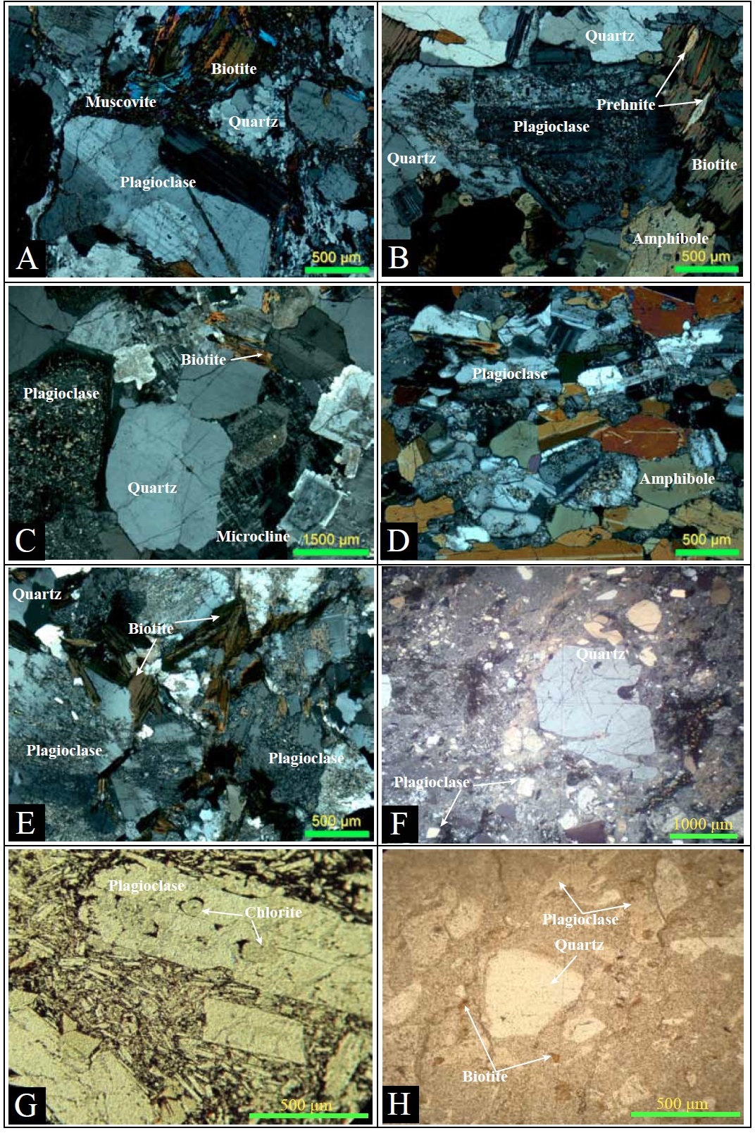 The petrography of the studied samples was carried out mainly in thin sections, in which the main mineralogy, both primary and secondary, was distinguished. Some images from the thin sections are detailed in figure 2, and the details of these descriptions are in the Appendix 1.