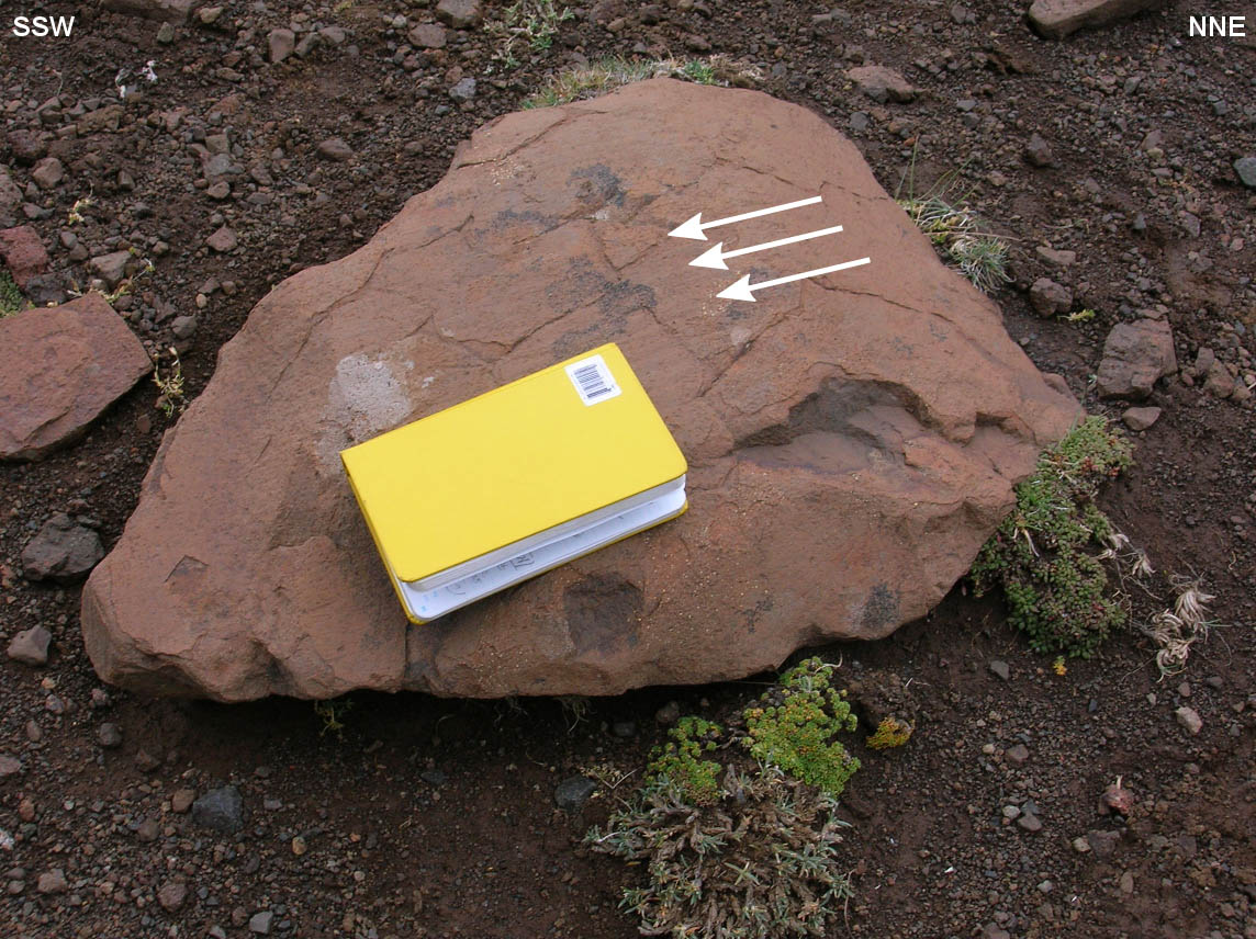 Previous studies discussed various aspects of the regional glacial geomorphology (Marden, 1997; Fogwill and Kubik, 2005; Glasser et al., 2008; Strelin et al., 2011; García et al., 2012; Solari et al., 2012).These studies show that between 50° and 51° S, the valleys distributed along the eastern margin of the SPIF contain moraine systems that indicate the action of effluent ice sheet outlet lobes and smaller glaciers flowing away from Andean divide. In contrast, we focused on the SBMR where glacial cirques provide evidence of mainly an alpine (non-ice sheet) style of glaciation (Fig. 1). Using aerial photographs and satellite imagery, plus field observations, it is clear that glaciers still occupy some of the cirques in the SBMR and its surroundings. Glacial cirques have been subject to varied erosion processes (Fig. 2) as testified, for example, by the presence of mass wasting deposits on the cirque flanks and floors. Some cirques host remnants of ancient moraine-dammed lakes, and there is also evidence of eroded remnants of lateral moraines (Fig. 3), as well as faceted and striated blocks of different sizes (Fig. 4).