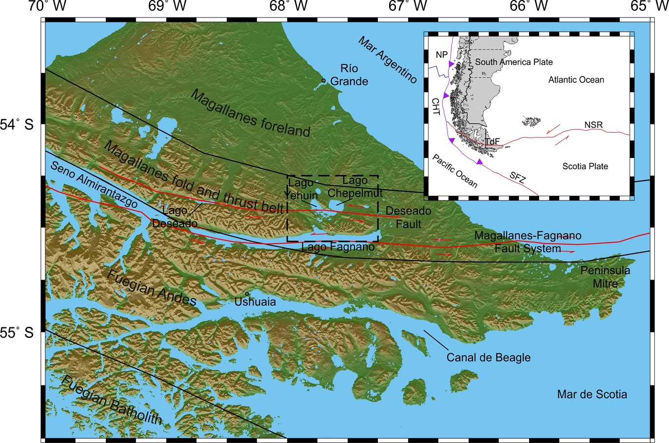 Lodolo, E.; Menichetti, M.; Bartole, R.; Ben-Avraham, Z.; Tassone, A.; Lippai, H. 2003. Magallanes-Fagnano continental transform fault (Tierra del Fuego, southernmost South America). Tectonics 22 (6): 1076. doi: 10.1029/2003TC001500.