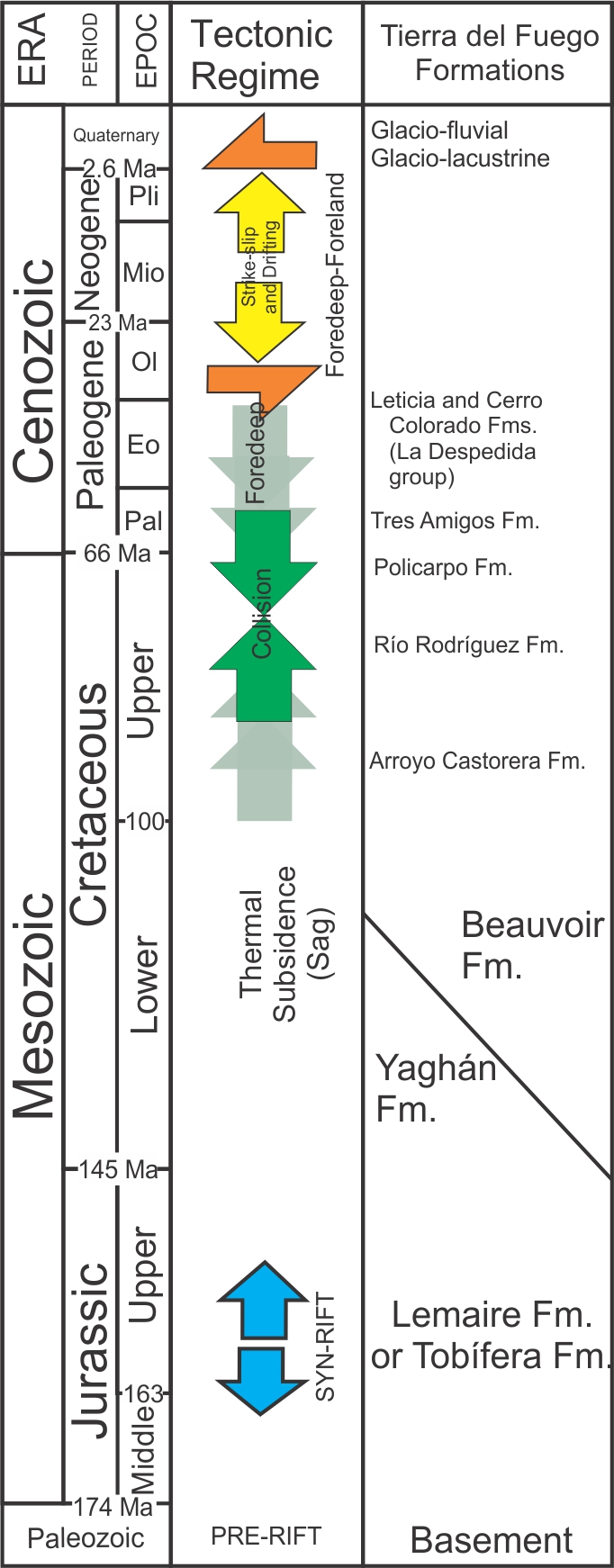 Olivero, E.B.; Malumián, N. 2008. Mesozoic-Cenozoic stratigraphy of the Fuegian Andes, Argentina. Geologica Acta 6 (1): 5-18.