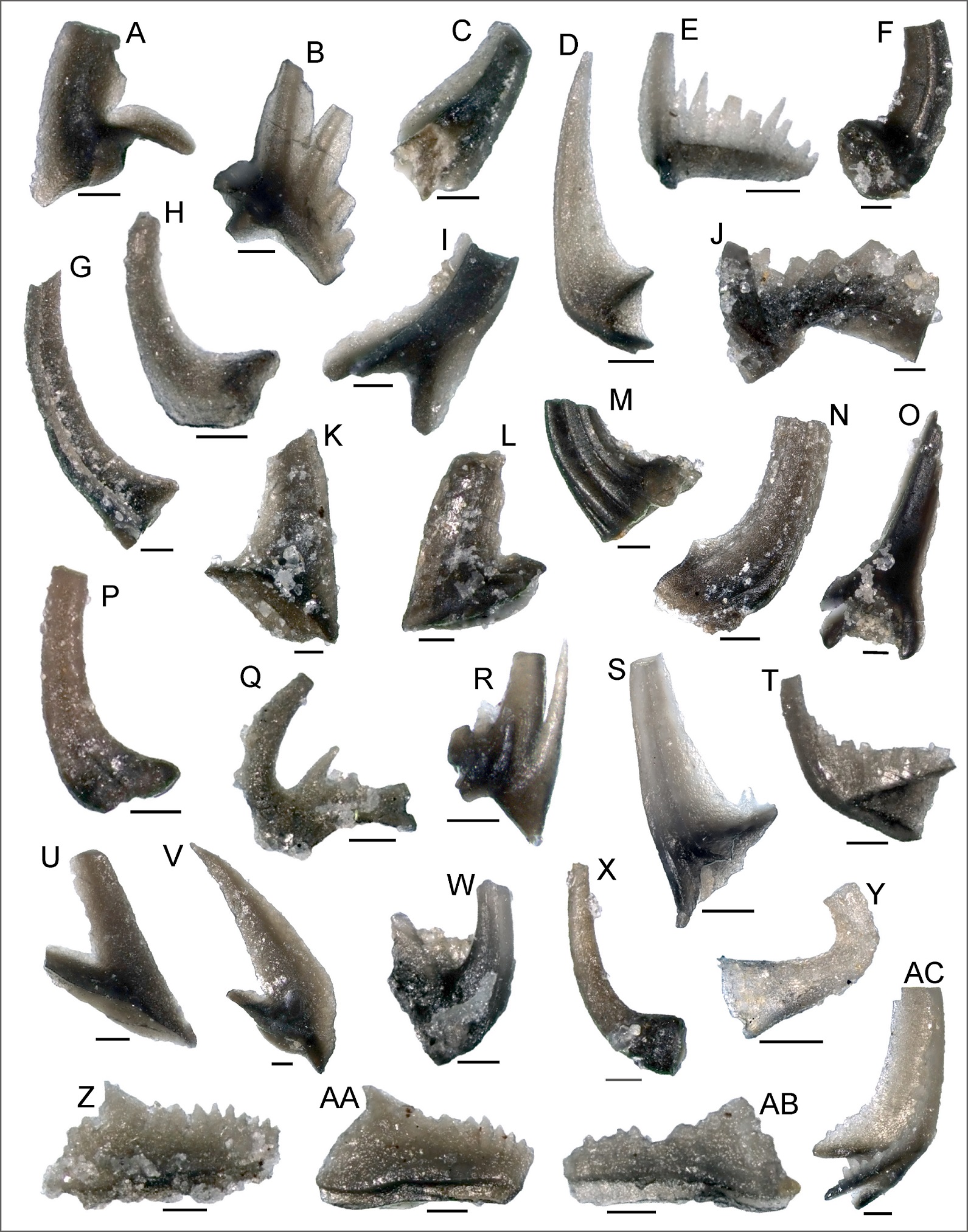 Serpagli, E. 1974. Lower Ordovician conodonts from Precordilleran Argentina (Province of San Juan). Bollettino della Società Paleontologica Italiana 13: 17-98.