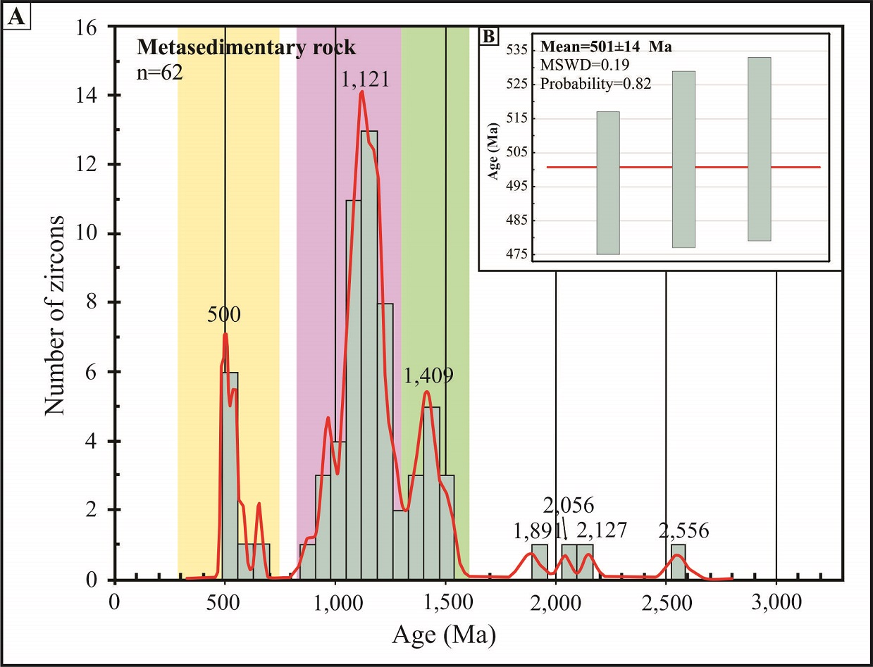 - Detrital zircon dating constrains the maximum depositional age for San Martín de los Andes metasedimentary rocks in 501±14 Ma (Series 3 Cambrian). The source rock ages are mainly Mesoproterozoic, although older and younger ages are also found.