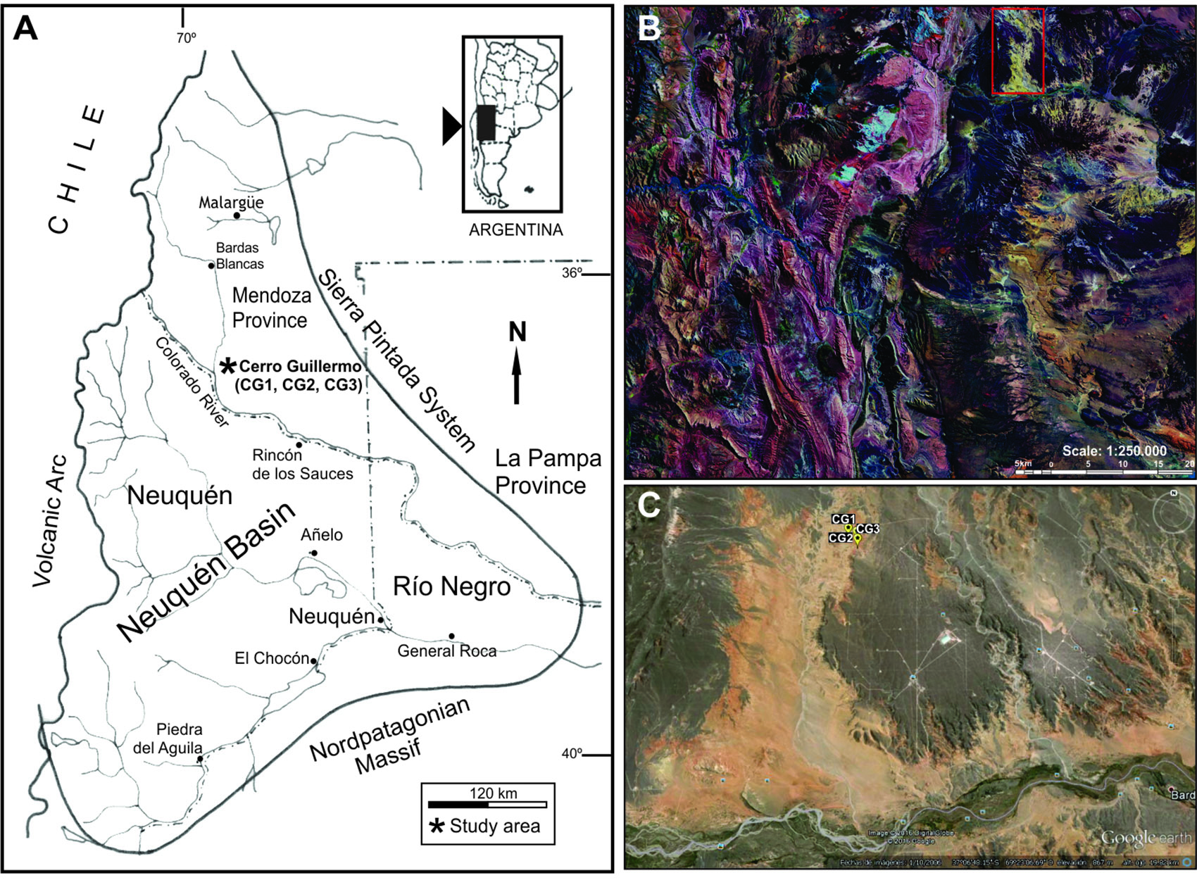 This paper evolved from discussions of taphonomic and environmental aspects of the author’s doctoral dissertation at the Universidad Nacional de Córdoba, Argentina. I would like to thank especially B. González Riga (Thesis Director) for his direction and advice in the geological and paleontological studies that made this manuscript possible and R. Astini (Thesis Co-director) for his important contribution in sedimentary analysis. The IANIGLA-CCT-Mendoza provided assistance during field and laboratory work (electron microscope). SEM and EDS analysis were provided by MEBYM (IANIGLA-CONICET). I gratefully acknowledge both anonymous reviewers for their constructive and valuable comments which improved the manuscript. I thank very much M. Bourguet and C. Sancho for their valuable support in the fieldworks. I am particularly grateful to A. Mancuso for her constructive comments and L. Starkman for improving the English version. This research was supported by the following projects: PICT BID 2005/33984 to J. Calvo, PIP CONICET 5222 to W. Volkheimer, and PIP 0713/09 to B. González Riga.