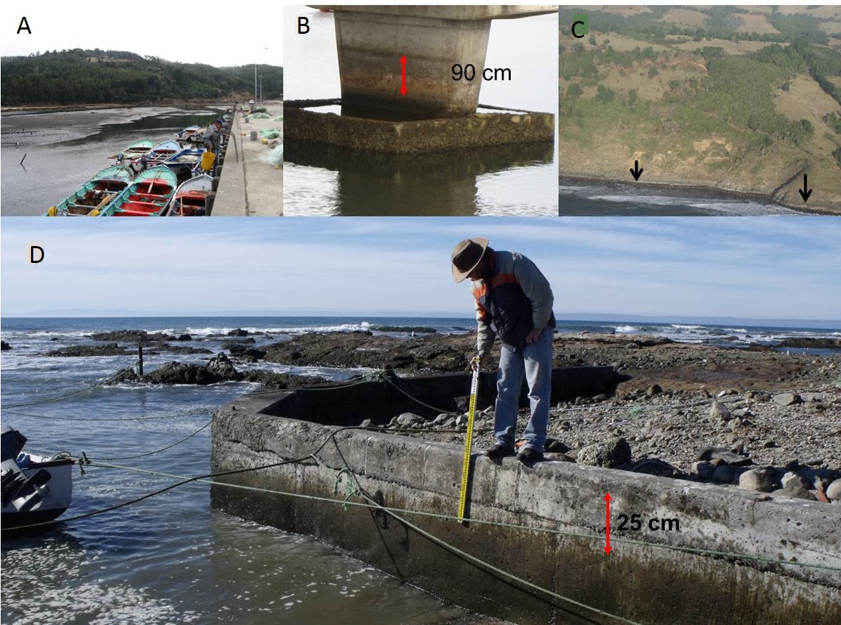 Quezada, J.; Jaque, E.; Belmonte, A.; Fernández, A.; Vásquez, D.; Martínez, C. 2010. Movimientos cosísmicos verticales y cambios geomorfológicos generados durante el terremoto Mw=8,8 del 27 de Febrero de 2010 en el centro-sur de Chile. Revista Geográfica del Sur 2: 11-44.