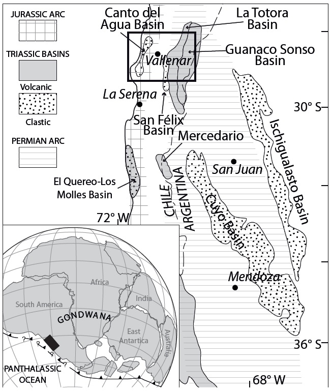 Charrier, R. 1979. El Triásico en Chile y regiones adyacentes de Argentina: una reconstrucción paleogeográfica y paleoclimática. Universidad de Chile, Departamento de Geología, Comunicaciones 26: 1-37.
