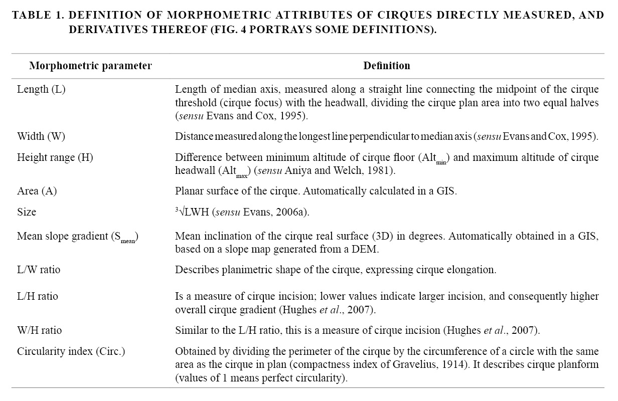 5.1. Cirque dimensions and morphology