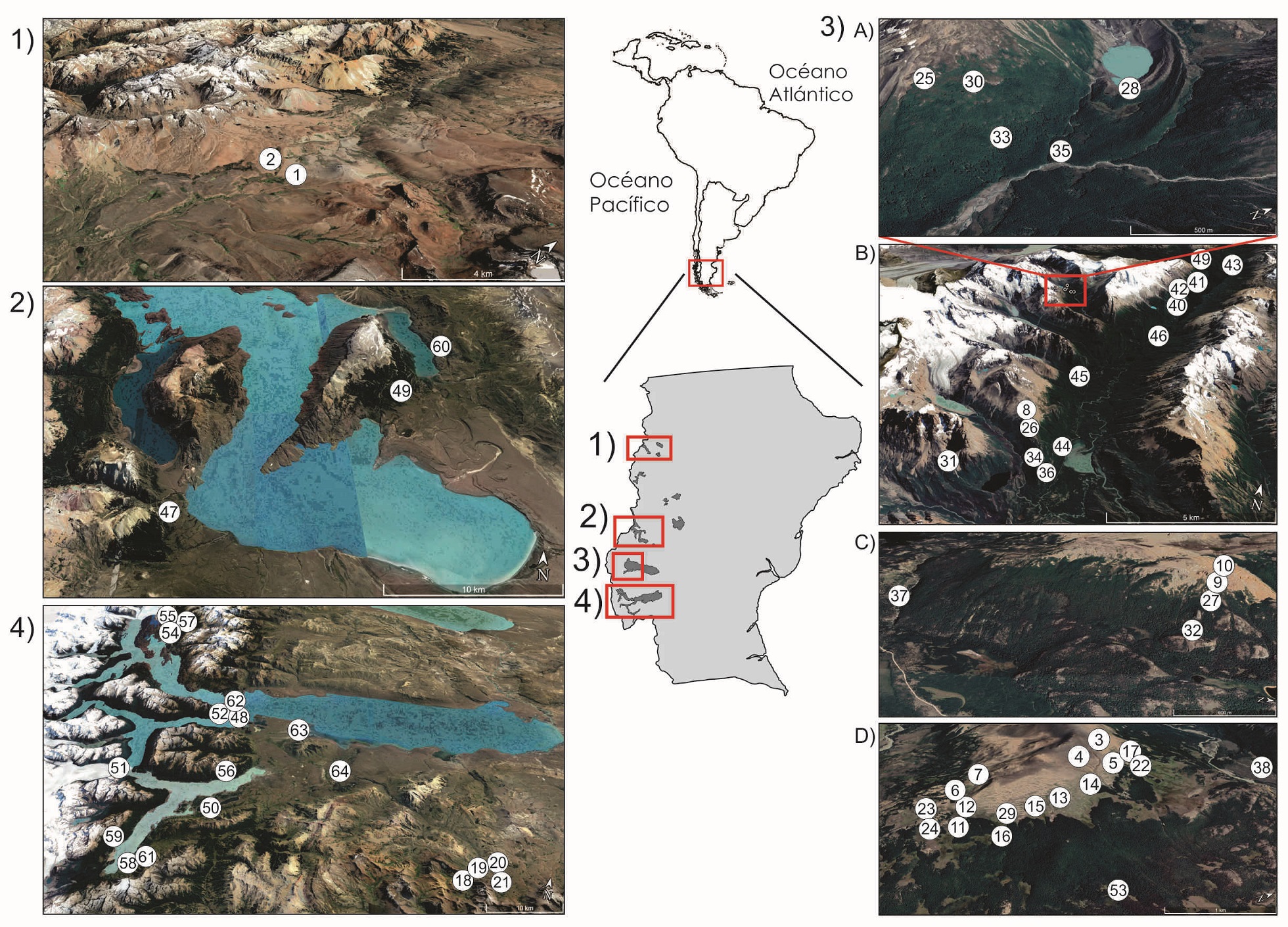 Strelin, J.A.; Kaplan, M.R.; Vandergoes, M.J.; Denton, G.H.; Schaefer, J.M. 2014. Holocene glacier history of the Lago Argentino basin, Southern Patagonian Icefield. Quaternary Science Reviews 101: 124-145. doi: 10.1016/j.quascirev.2014.06.026.