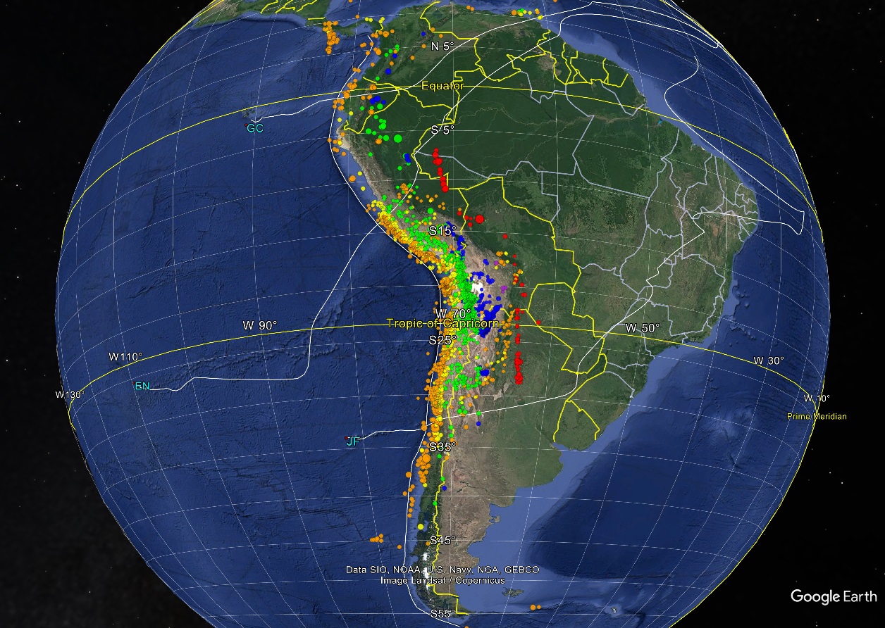 Barazangi, M.; Isacks, B.L. 1976. Spatial distribution of earthquakes and subduction of the Nazca plate beneath South America. Geology 4: 686-692. doi: https://doi.org/10.1130/0091-7613(1976)4%3C686:SDOEAS%3E2.0.CO;2