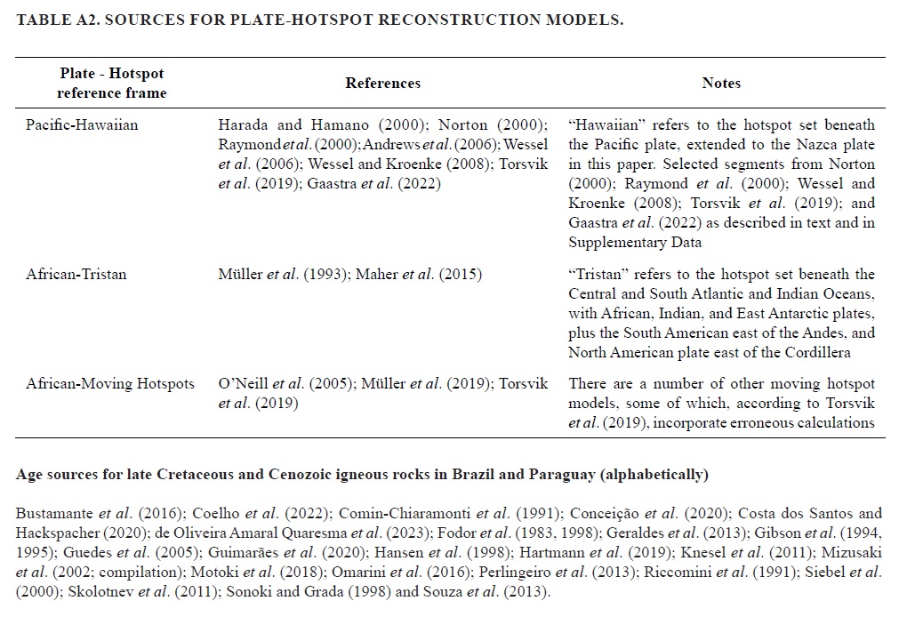 Table A2. Sources for plate-hotspot reconstruction models.