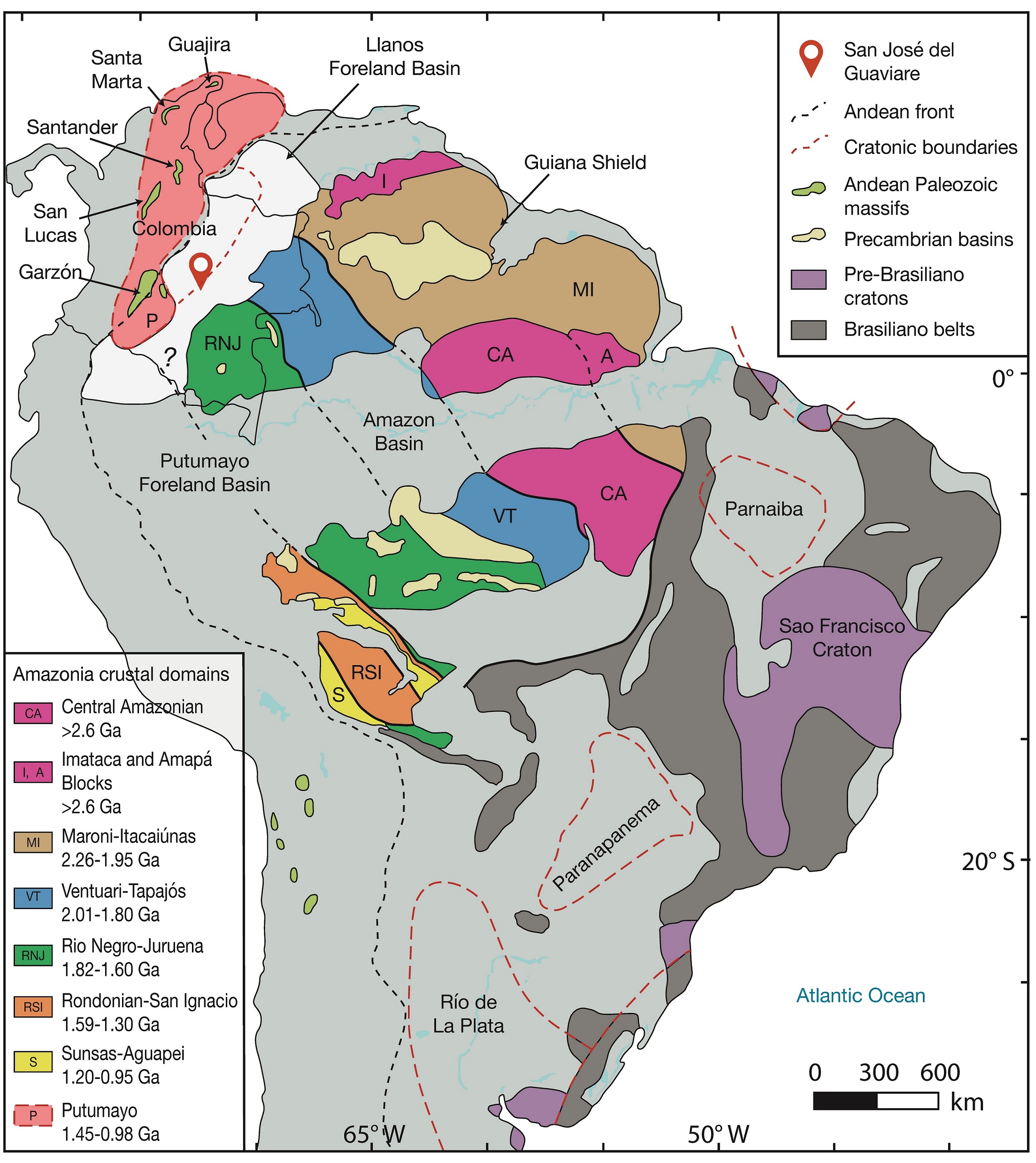 Ibáñez-Mejía, M.; Ruiz, J.; Valencia, V.A.; Cardona, A.; Gehrels, G.E.; Mora, A.R. 2011. The Putumayo orogen of Amazonia and its implications for Rodinia reconstructions: new U-Pb geochronological insights into the Proterozoic tectonic evolution of northwestern South America. Precambrian Research 191 (1-2): 58-77. https://doi.org/10.1016/j.precamres.2011.09.005