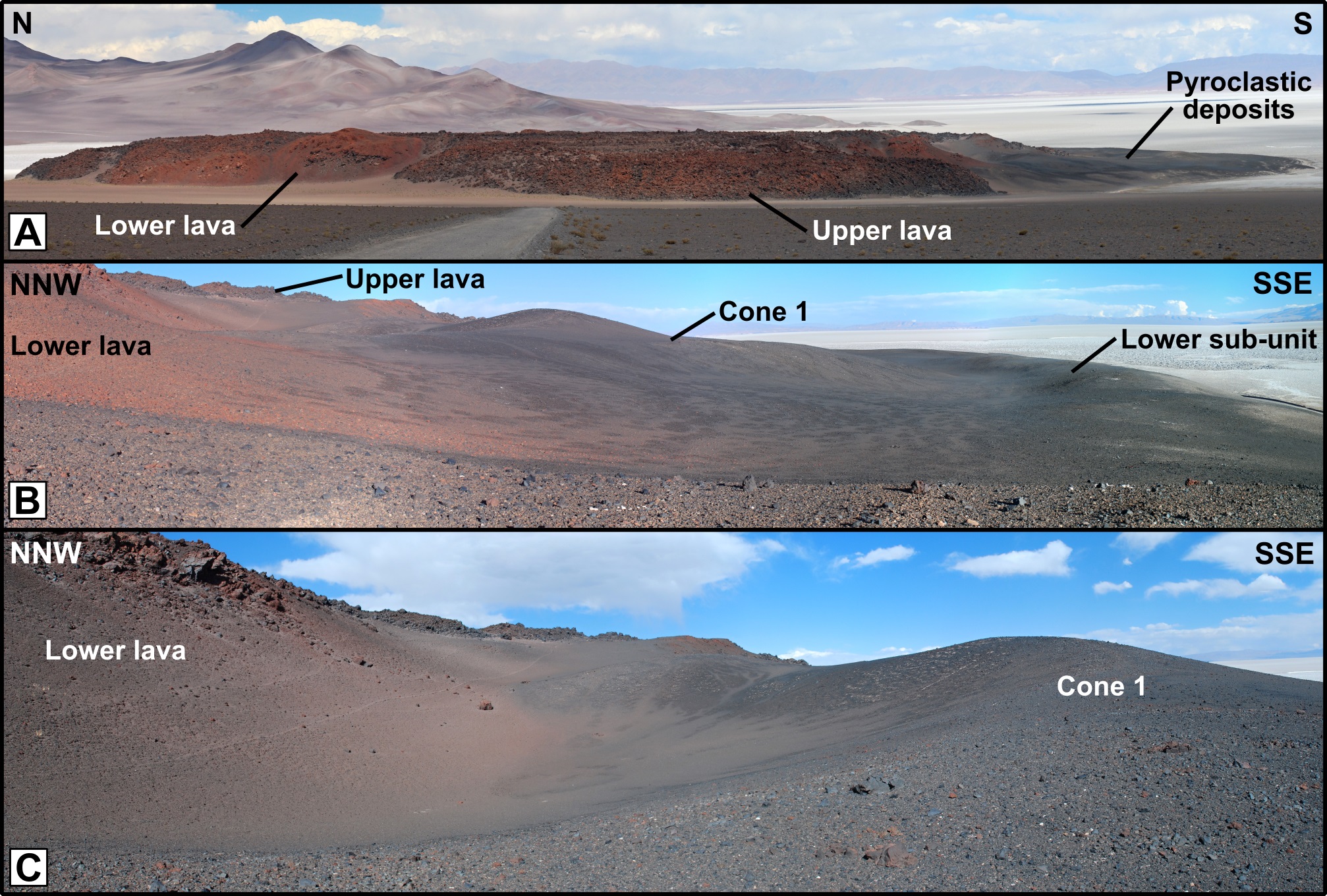 Here, we describe mafic monogenetic volcanism, and in particular phreatomagmatism, related to a salar in the Puna plateau of northwestern Argentina. We characterize and reconstruct the eruptive histories of two such centers (here named Panqueque and Medialuna) emplaced at the margin of (Panqueque) and within (Medialuna) the Salar de Arizaro.