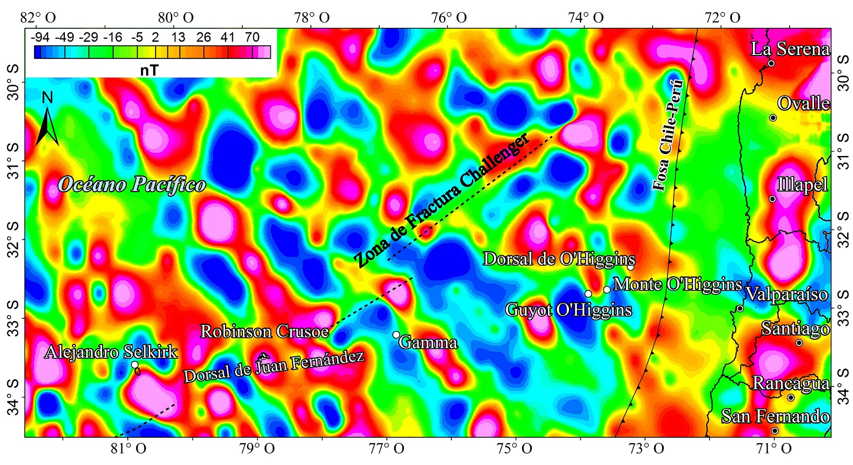 Yáñez, G.A.; Ranero, C.R.; von Huene, R.; Díaz, J. 2001. Magnetic anomaly interpretation across the southern Central Andes (32°-34° S): The role of the Juan Fernández Ridge in the late Tertiary evolution of the margin. Journal of Geophysical Research, Solid Earth 106 (B4): 6325-6345. https://doi.org/10.1029/2000JB900337